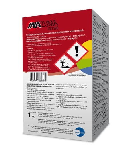 Sposób działania: Inazuma 130 WG jest insektycydem w formie granul do sporządzania zawiesiny wodnej o działaniu kontaktowym i żołądkowym, przeznaczonym do zwalczania szkodników gryzących i ssących. Na roślinie działa powierzchniowo, wgłębnie i systemicznie