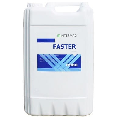 FASTER to adiuwant poprawiający właściwości roztworów stosowanych w zabiegach dokarmiania dolistnego i ochrony roślin. W odróżnieniu od innych adiuwantów, dodatkowo, posiada właściwości antyspieniające, dzięki czemu istotnie zmniejsza ilość piany w zbiorniku opryskiwacza.
