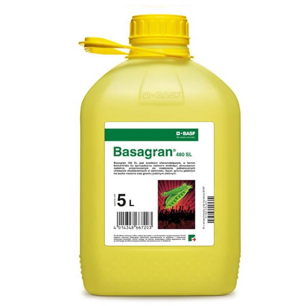 Sposób działania: Basagran 480 SL jest środkiem chwastobójczym, w formie koncentratu do sporządzania roztworu wodnego, stosowanym nalistnie, przeznaczonym do zwalczania jednorocznych chwastów dwuliściennych w ziemniaku, fasoli, grochu jadalnym na suche nasiona oraz grochu jadalnym zielonym. Środek przeznaczony do stosowania przy użyciu opryskiwaczy polowych