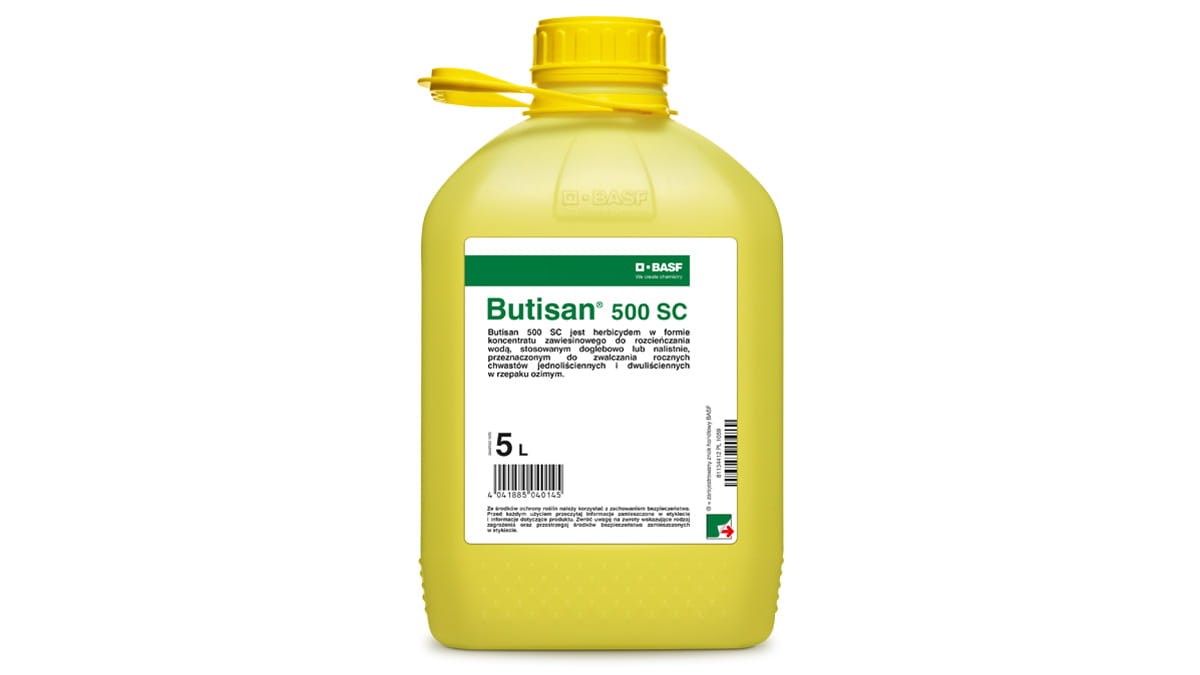 Sposób działania: Butisan 500 SC jest herbicydem w formie koncentratu zawiesinowego do rozcieńczania wodą, stosowanym doglebowo lub nalistnie, przeznaczonym do zwalczania rocznych chwastów jednoliściennych i dwuliściennych w rzepaku ozimym. Zgodnie z klasyfikacją HRAC substancja czynna metazachlor zaliczana jest do grupy K3