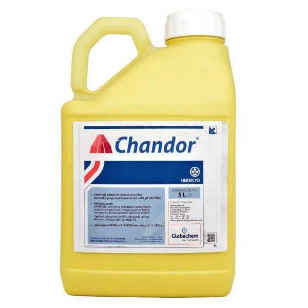 Chandor wykazuje wysoką skuteczność w zwalczaniu szerokiego spektrum chwastów jedno- i dwuliściennych, takich jak komosa biała, chwastnica jednostronna, szarłat szorstki, fiołek polny, gwiazdnica pospolita oraz różne gatunki rdestów. Działa przedwschodowo, tworząc na powierzchni gleby barierę, która hamuje kiełkowanie i rozwój chwastów. Efekt działania utrzymuje się nawet do 3 miesięcy, co znacząco ogranicza zachwaszczenie wtórne.
