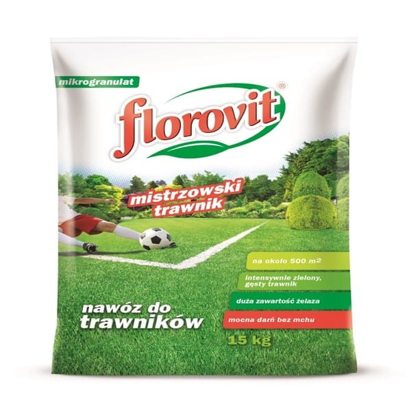 Florovit Nawóz do trawników "Mistrzowski Trawnik" został opracowany, aby zadbać o intensywny wzrost trawy i utrzymanie pięknej zieleni przez cały sezon. Nawóz jest wzbogacony o mech i zawiera duże ilości żelaza, dzięki czemu jest idealnie dostosowany do potrzeb trawników, zwłaszcza tych ozdobnych i reprezentacyjnych.