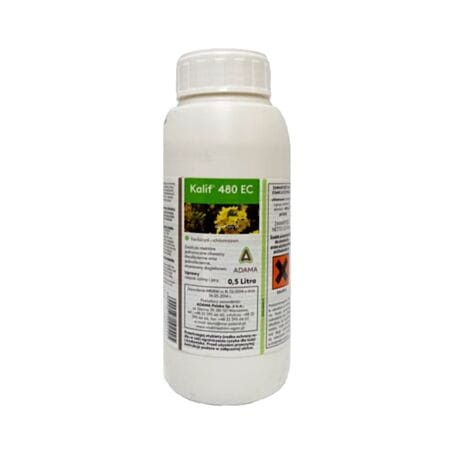 Sposób działania: Kalif 480 EC jest środkiem chwastobójczym w formie koncentratu do sporządzania emulsji wodnej, stosowanym doglebowo, przeznaczonym do zwalczania niektórych jednorocznych chwastów dwuliściennych oraz jednoliściennych w rzepaku ozimym i rzepaku jarym. Środek przeznaczony do stosowania przy użyciu opryskiwaczy polowych