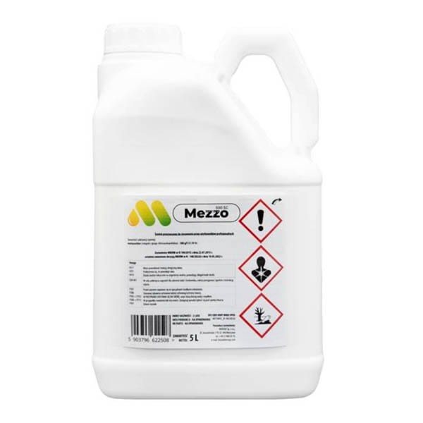 Sposób działania: MEZZO 500 SC jest środkiem chwastobójczym, koncentratem w postaci stężonej zawiesiny do rozcieńczania z wodą, stosowanym nalistnie, przeznaczonym do zwalczania rocznych chwastów dwuliściennych i jednoliściennych w rzepaku ozimym i kapuście głowiastej białej. Środek przeznaczony do stosowania przy użyciu samobieżnych lub ciągnikowych opryskiwaczy polowych.