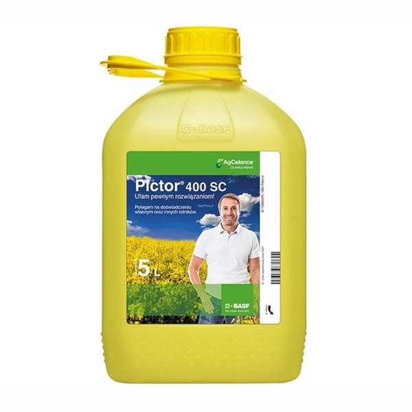 PICTOR 400 SC 5L to wysokiej klasy środek przeciw chorobom grzybowym rzepaku ozimego. Obecnie jest jednym z najlepszych rozwiązań na rynku. Za jego skuteczność odpowiadają: dimoksystrobina, czyli fungicyd z grupy strobiluryn w stężeniu 200 gram na litr, a także inny fungicyd – boskalid, również w stężeniu 200 gram na litr. Takie połączenie zapewnia maksymalną skuteczność przeciw takim grzybom jak sucha zgnilizna czy czerń krzyżowych, a jego działanie potwierdzają liczne pozytywne opinie rolników. W naszym sklepie znaleźć można PICTOR 400 SC w cenie, która jest zaskakująco atrakcyjna jak na jakość środka.