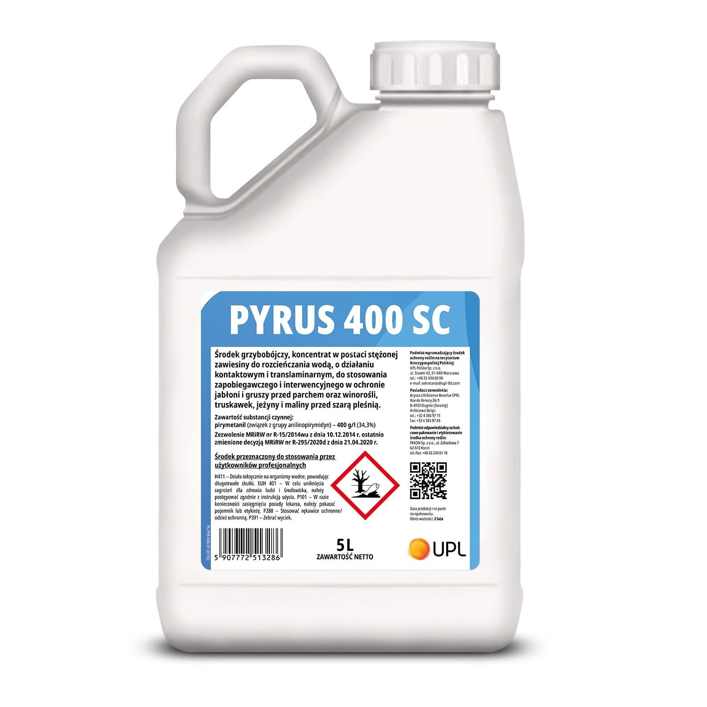Sposób działania: Środek grzybobójczy, koncentrat w postaci stężonej zawiesiny do rozcieńczania wodą o działaniu kontaktowym i translaminarnym do stosowania zapobiegawczego i interwencyjnego w ochronie jabłoni i gruszy przed parchem oraz winorośli, truskawek, jeżyny i maliny przed szarą pleśnią. Pyrus 400 SC działa skutecznie również w niższych tempera turach. Środek przeznaczony do stosowania przy użyciu opryskiwaczy polowych i sadowniczych oraz ręcznych w przypadku truskawki uprawianej pod osłonami
