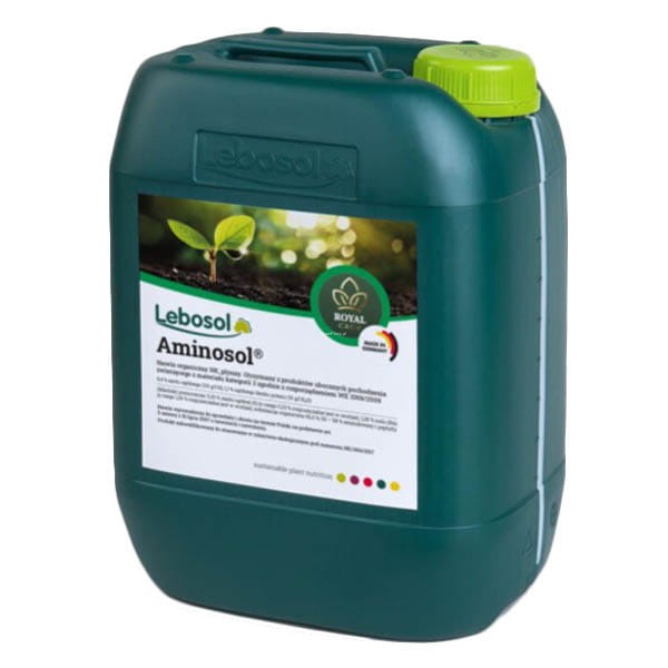 Aminosol – organiczny azotowy nawóz dolistny o wysokiej zawartości aminokwasów. Doskonały do wspomagania roślin w warunkach stresowych, takich jak przesadzanie, okresowy niedobór wody, przymrozki czy uszkodzenia wywołane przez patogeny. Aminosol zwiększa wielkość i jakość plonów oraz wspomaga rozwój korzeni, zwłaszcza w początkowych fazach wzrostu. Dzięki zawartości 21 aminokwasów pozyskiwanych z białek zwierzęcych, produkt ten znacząco poprawia kondycję roślin.