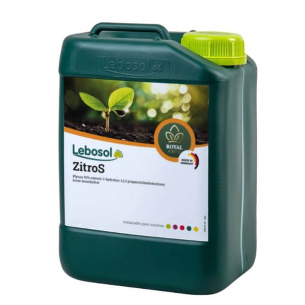 RC ZitroS jest preparatem do regulacji i stabilizacji pH wody opryskowej, idealny do ochrony skuteczności środków chemicznych oraz zapobiegania hydrolizie alkalicznej. Skutecznie obniża i buforuje pH wody, co wspiera efektywność zabiegów chemicznych, minimalizując ryzyko rozkładu składników aktywnych. Dodatkowo może być stosowany do czyszczenia systemów nawadniających, w tym węży do fertygacji, a także do usuwania plam z kamienia na liściach roślin.
