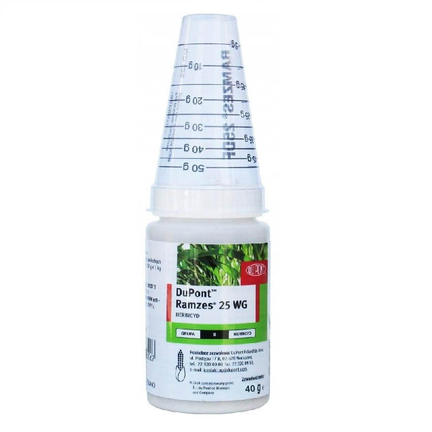 Sposób działania: RAMZES 25 WG jest środkiem chwastobójczym w formie granul do sporządzania zawiesiny wodnej, stosowany nalistnie, przeznaczony do powschodowego zwalczania perzu właściwego i rocznych chwastów jednoliściennych (chwasty prosowate) oraz niektórych chwastów dwuliściennych w kukurydzy, ziemniaku i pomidorze