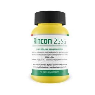 Sposób działania: Rincon 25 SG jest herbicydem w formie granul rozpuszczalnych w wodzie, stosowanym nalistnie, przeznaczonym do powschodowego zwalczania niektórych chwastów jednoliściennych i dwuliściennych w kukurydzy oraz ziemniaku. Zgodnie z klasyfikacją HRAC substancja czynna rimsulfuron zaliczana jest do grupy B. Środek przeznaczony do stosowania przy użyciu samobieżnych lub ciągnikowych opryskiwaczy polowych