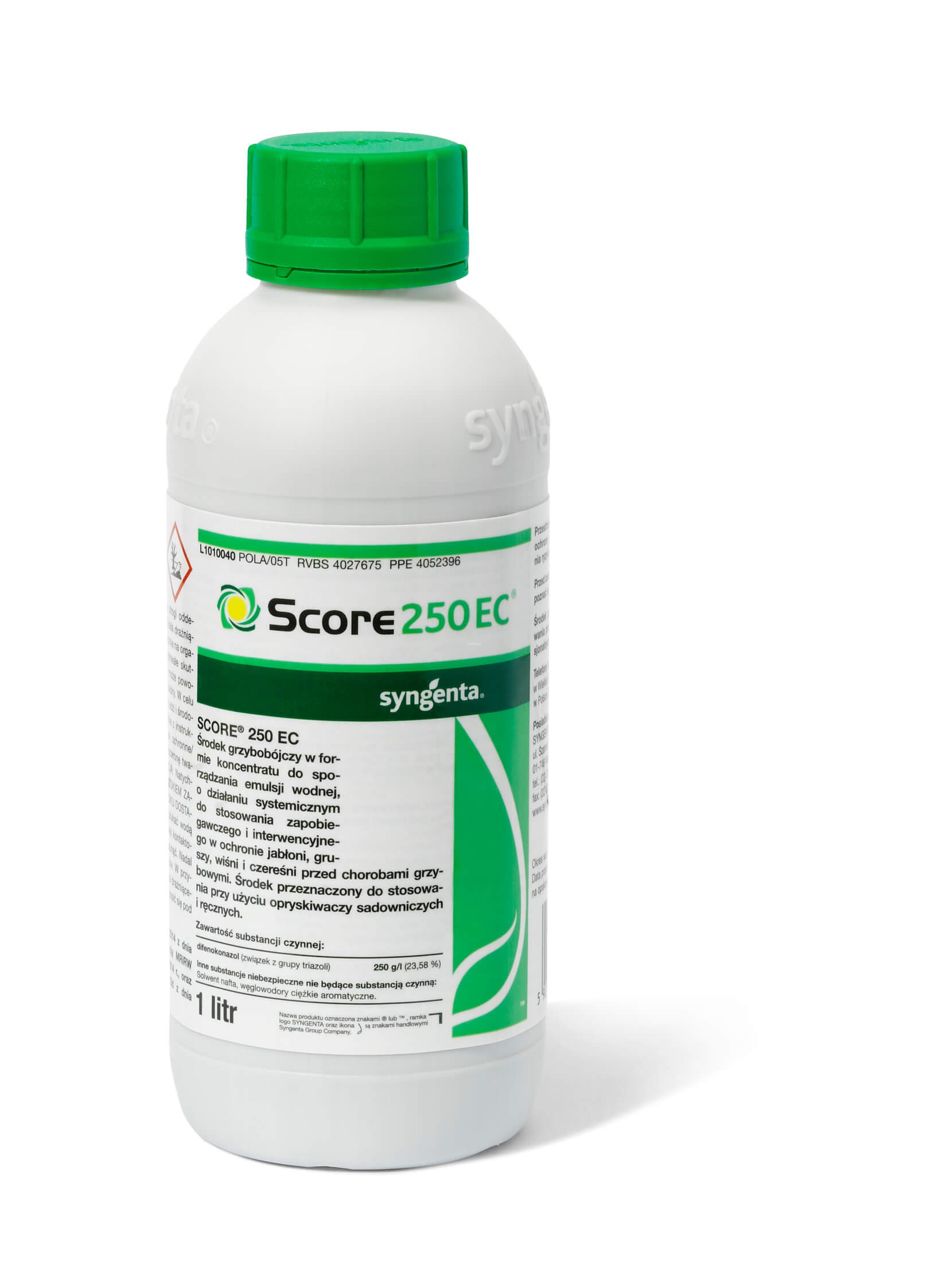 Sposób działania: Środek grzybobójczy w formie koncentratu do sporządzania emulsji wodnej, o działaniu systemicznym do stosowania zapobiegawczego i interwencyjnego w ochronie jabłoni, gruszy, wiśni i czereśni przed chorobami grzybowymi. Środek przeznaczony do stosowania przy użyciu samobieżnych lub ciągnikowych opryskiwaczy sadowniczych i opryskiwaczy ręcznych
