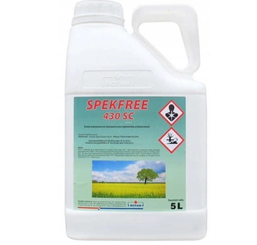 Spekfree 430 SC jest środkiem grzybobójczym w formie płynu do sporządzania emulsji wodnej o działaniu układowym do stosowania zapobiegawczego i interwencyjnego w ochronie pszenicy ozimej, jęczmienia jarego oraz rzepaku ozimego przed chorobami grzybowymi. Środek wykazuje dodatkowo korzystny wpływ na rozwój roślin rzepaku.