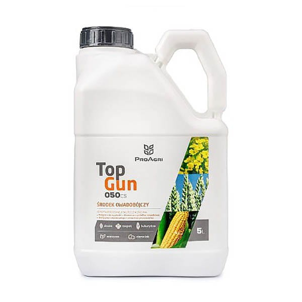 TopGun 050 CS to insektycyd w formie zawiesiny kapsuł w cieczy (CS), przeznaczony do zwalczania szkodników gryzących i ssących w szerokim zakresie upraw. Działa kontaktowo i żołądkowo, zapewniając szybkie i skuteczne zwalczanie owadów. Jest skuteczny w ochronie upraw takich jak ziemniak, rzepak ozimy, pszenica ozima, kukurydza, burak cukrowy oraz jabłoń. Dzięki swojej formule, TopGun 050 CS zapewnia długotrwałą ochronę przed szkodnikami.