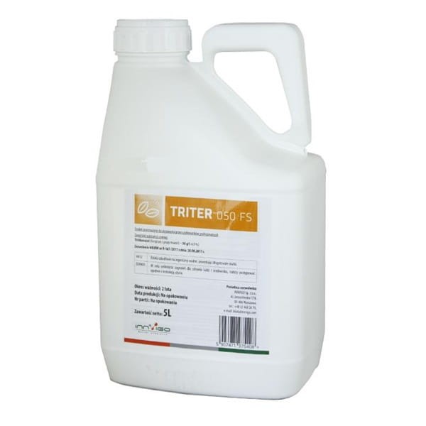 Sposób użycia: Triter 050 FS jest fungicydem, w formie płynnego koncentratu do zaprawiania materiału siewnego. Środek o działaniu układowym przeznaczony do zaprawiania w zaprawiarkach przystosowanych do zapraw płynnych