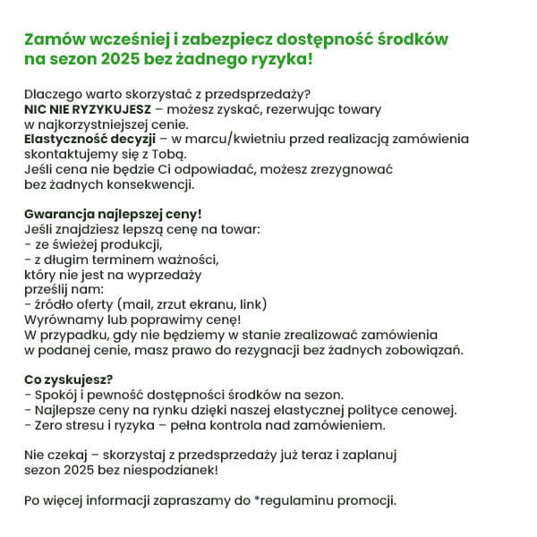 Maksymalna liczba zabiegów w sezonie: 2 (z uwzględnieniem zastosowań małoobszarowych)